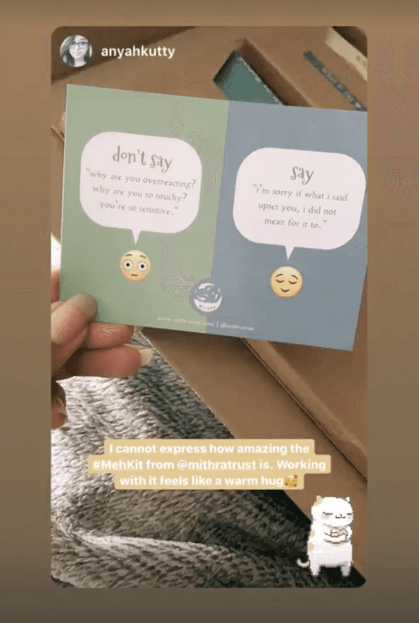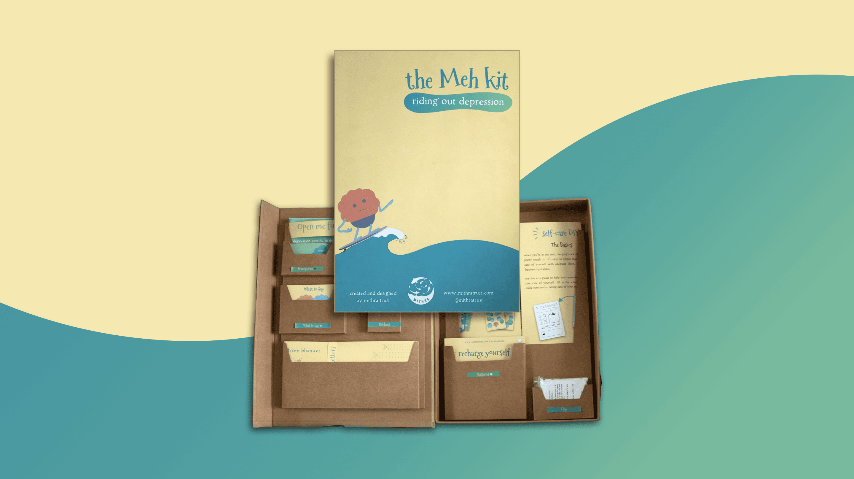 The Meh Kit is a self-discovery tool for riding out depression. Created by mental health organization Mithra Trust, I worked on the complete product design and execution.